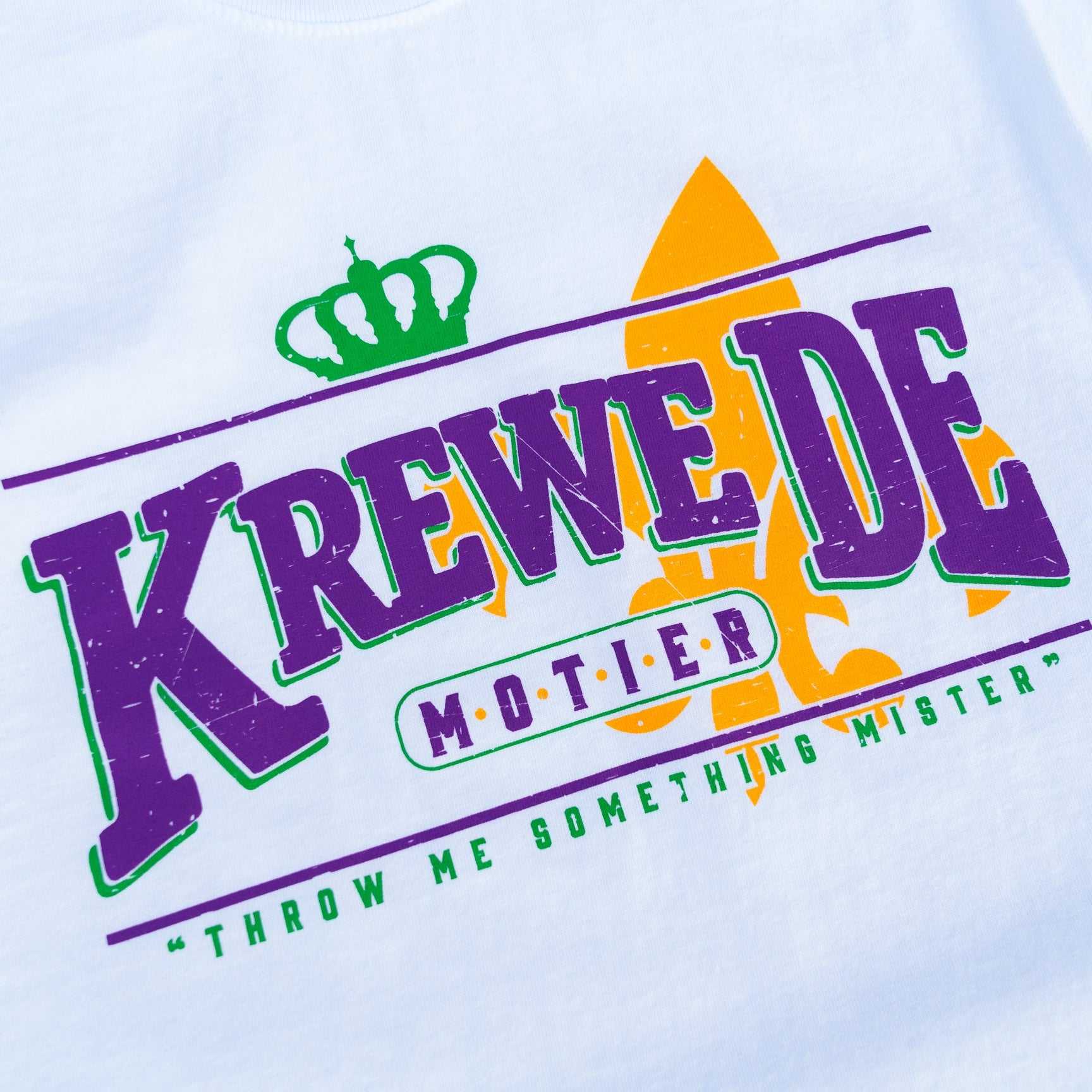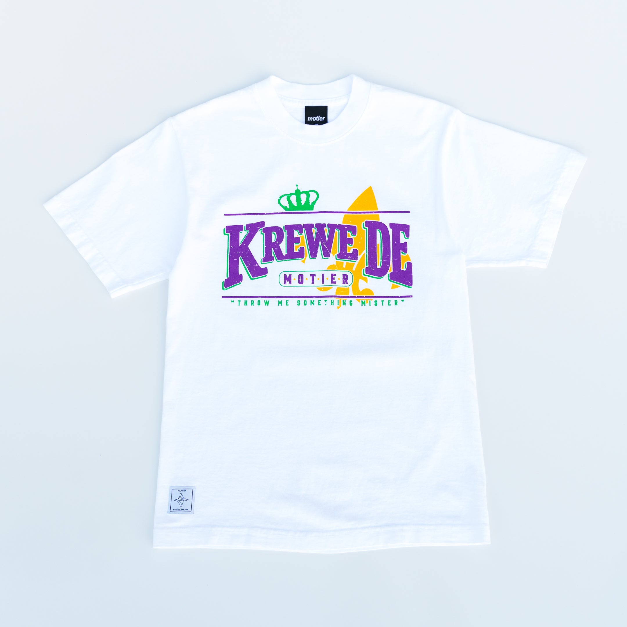 A new take on the Krewe De Motier collection. An oversized, vintage-distressed front graphic. A bolder evolution of the Krewe De Motier vibe.