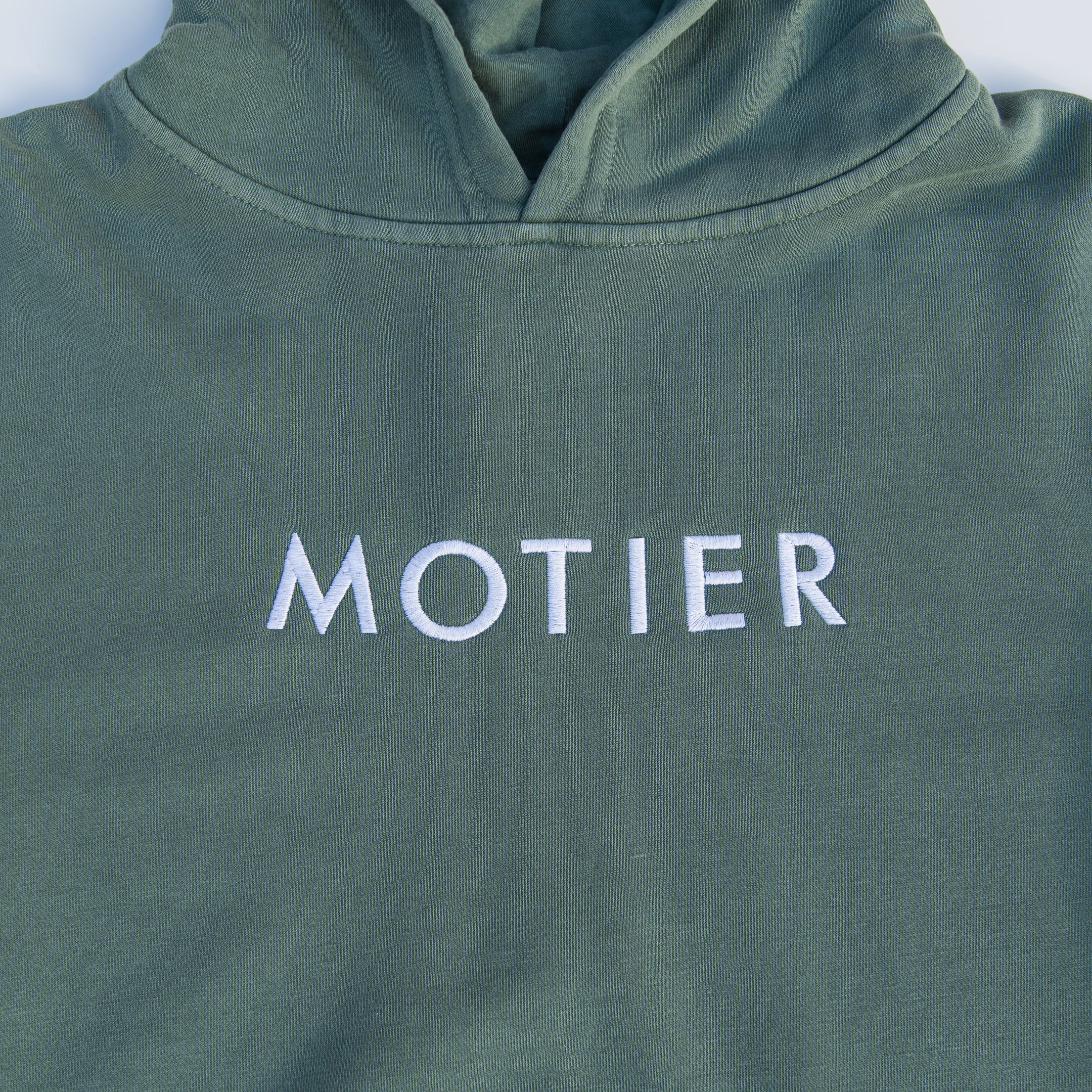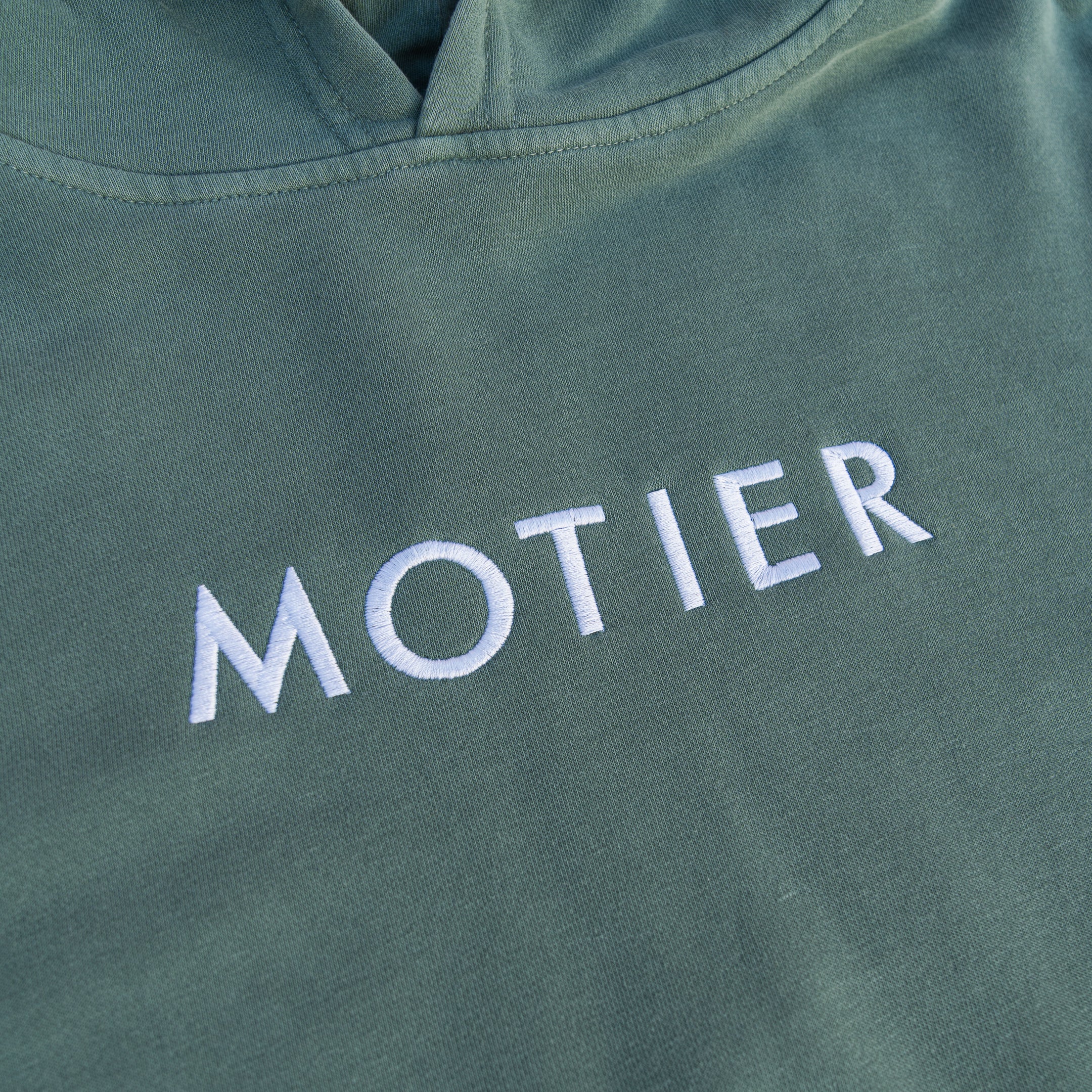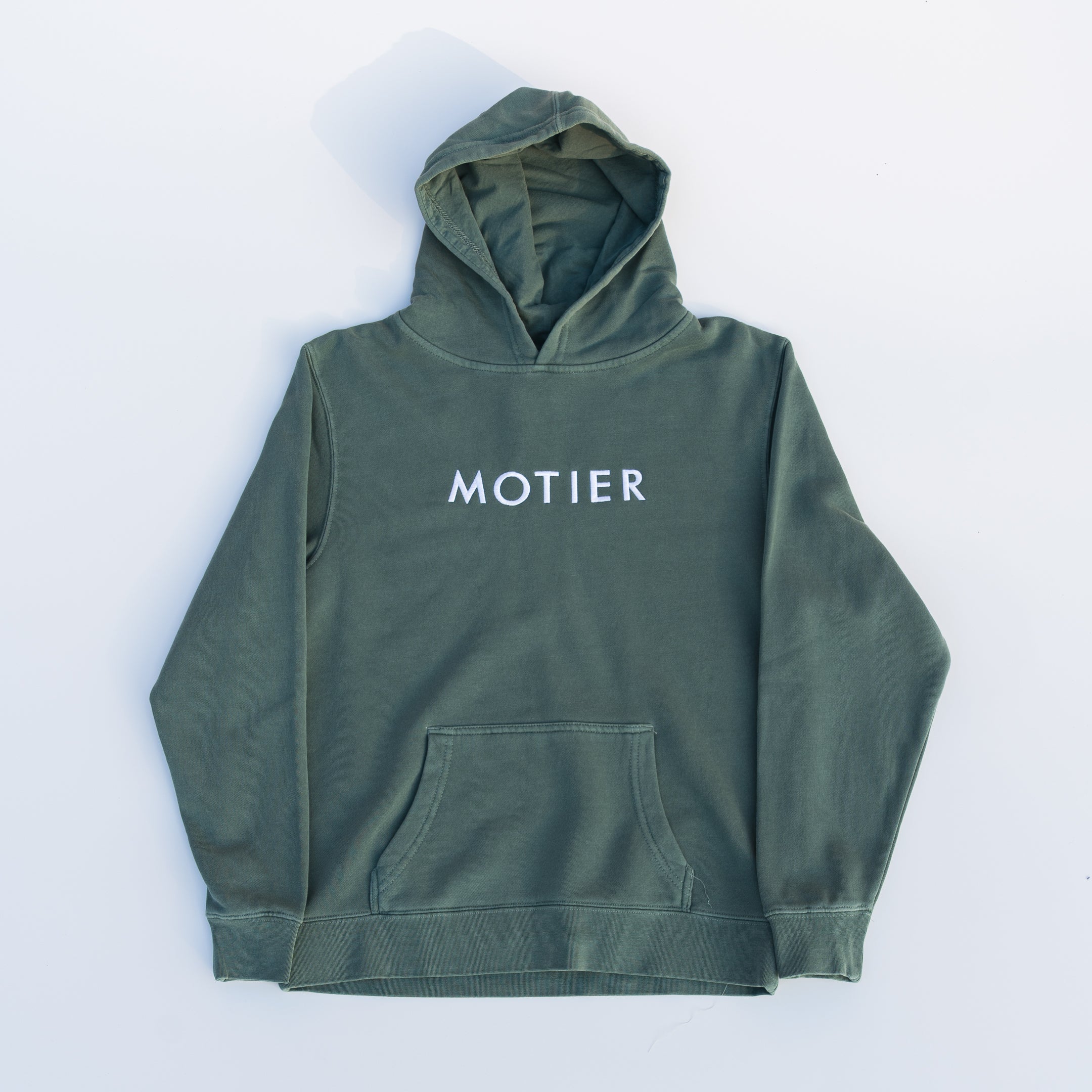 This garment dyed hoodie has a unique vintage character featuring the Motier Spaced Logo. Made with ultra soft cotton/polyester blend fleece, these garments are as comfortable as they are eye catching.