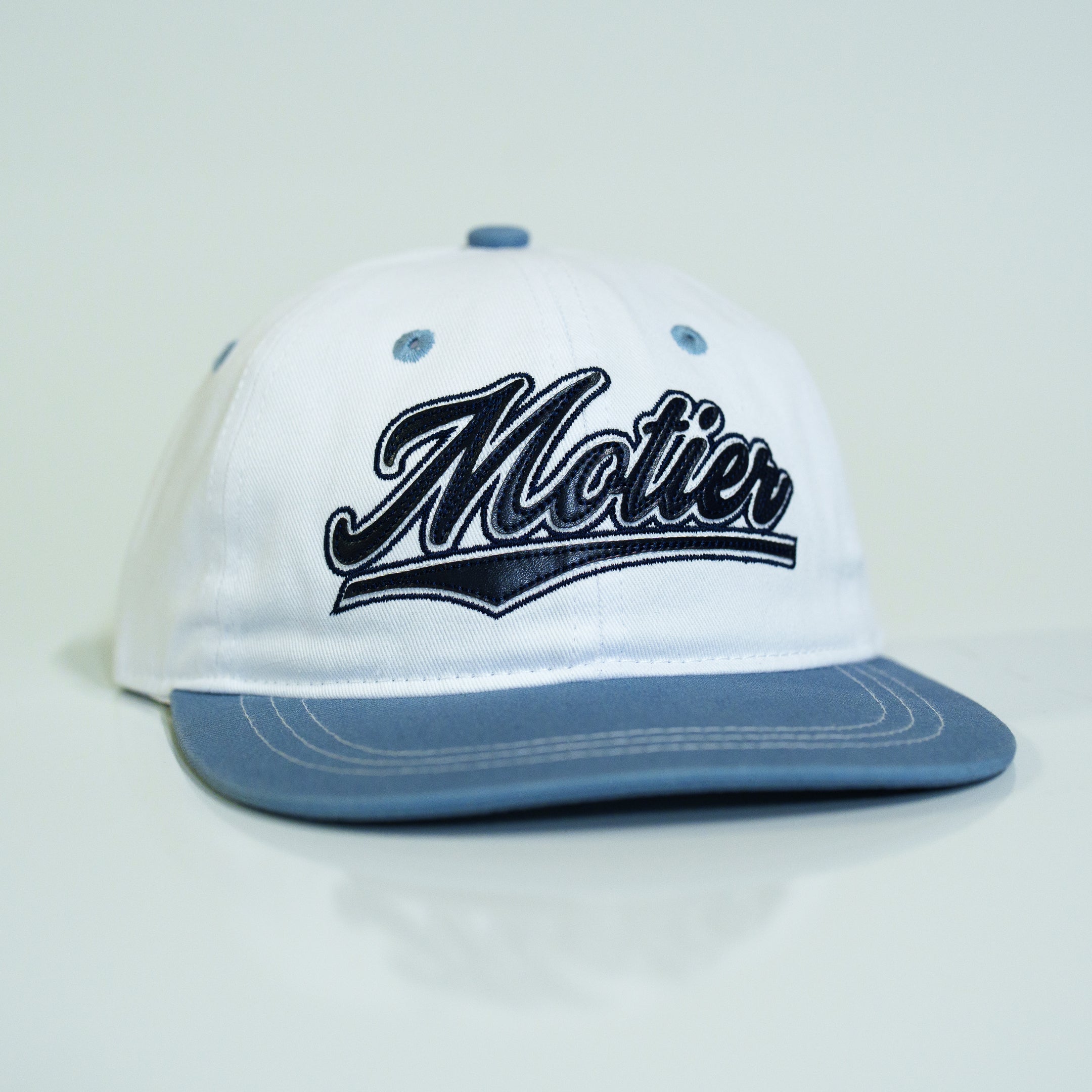 Two-Tone Leather Script Patch Hat (White/Skyway)